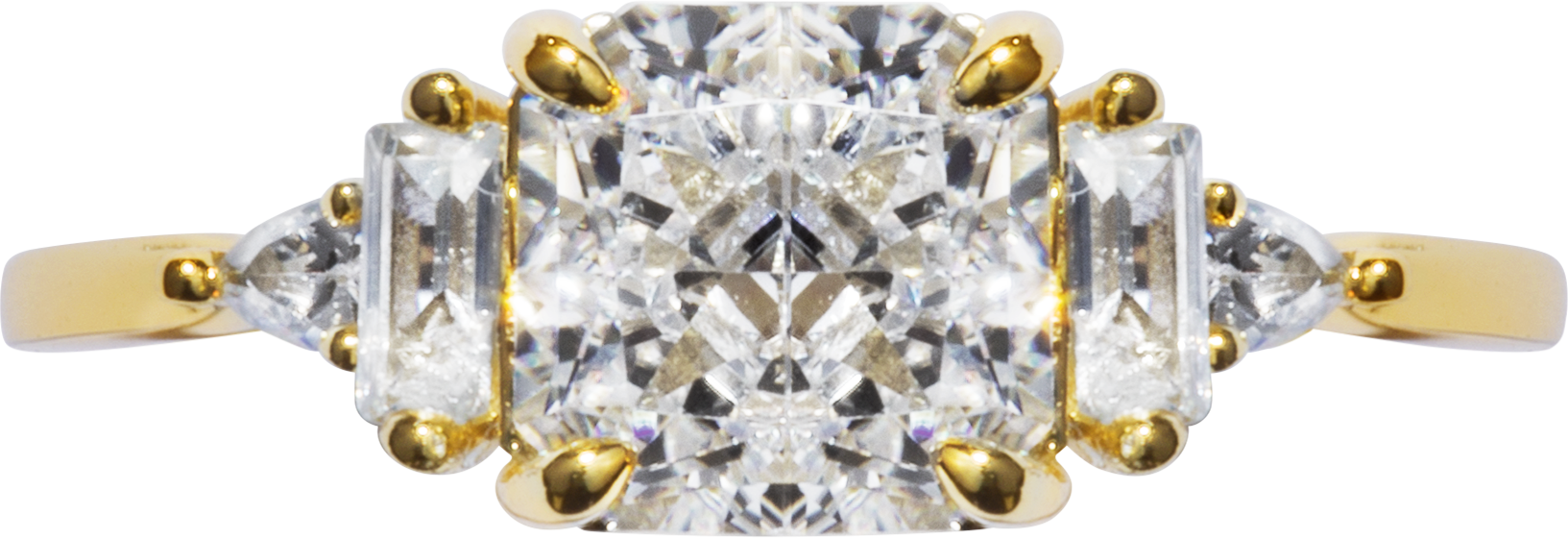 Introducing our breathtaking Crushed Ice Square Ring, a true masterpiece that takes center stage with its captivating beauty. This remarkable ring boasts a mesmerising crushed ice centre stone, elegantly surrounded by glistening baguette and pear-shaped side stones, creating a harmonious blend of modern sophistication and timeless allure.