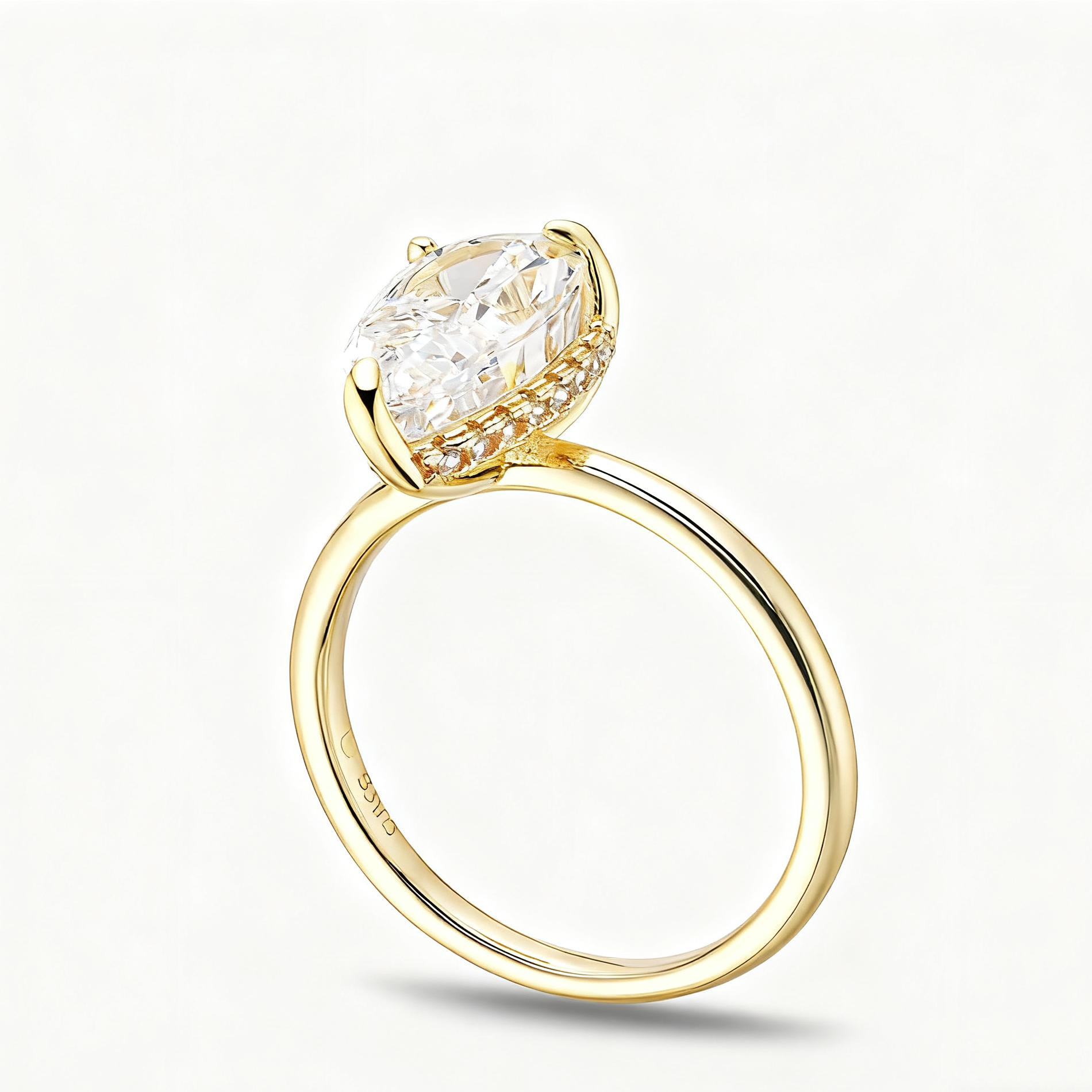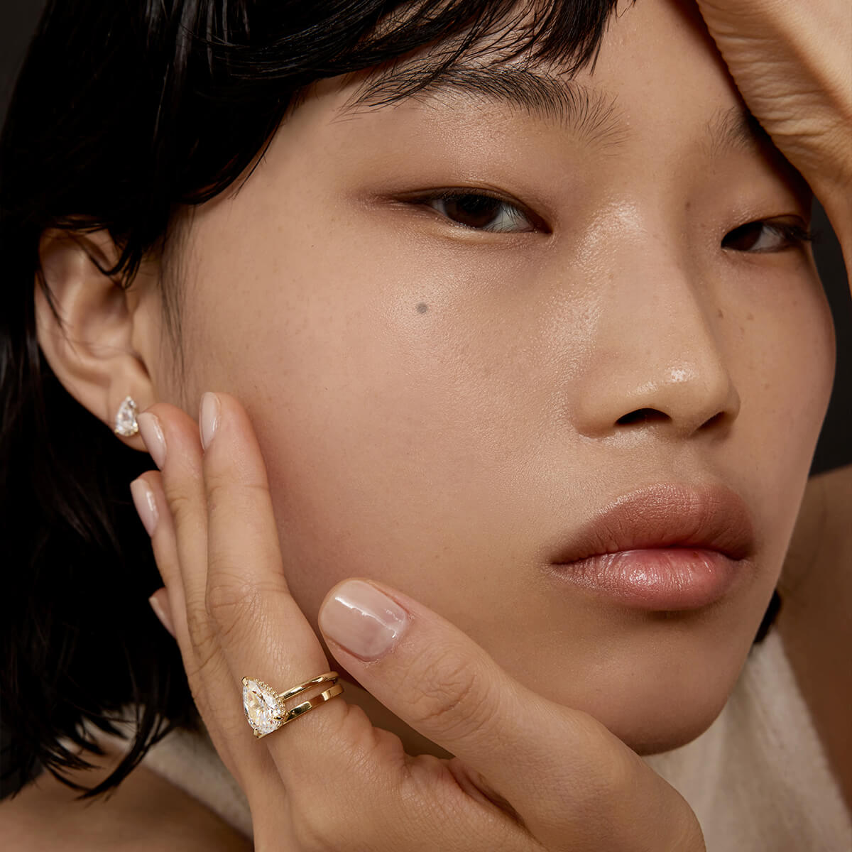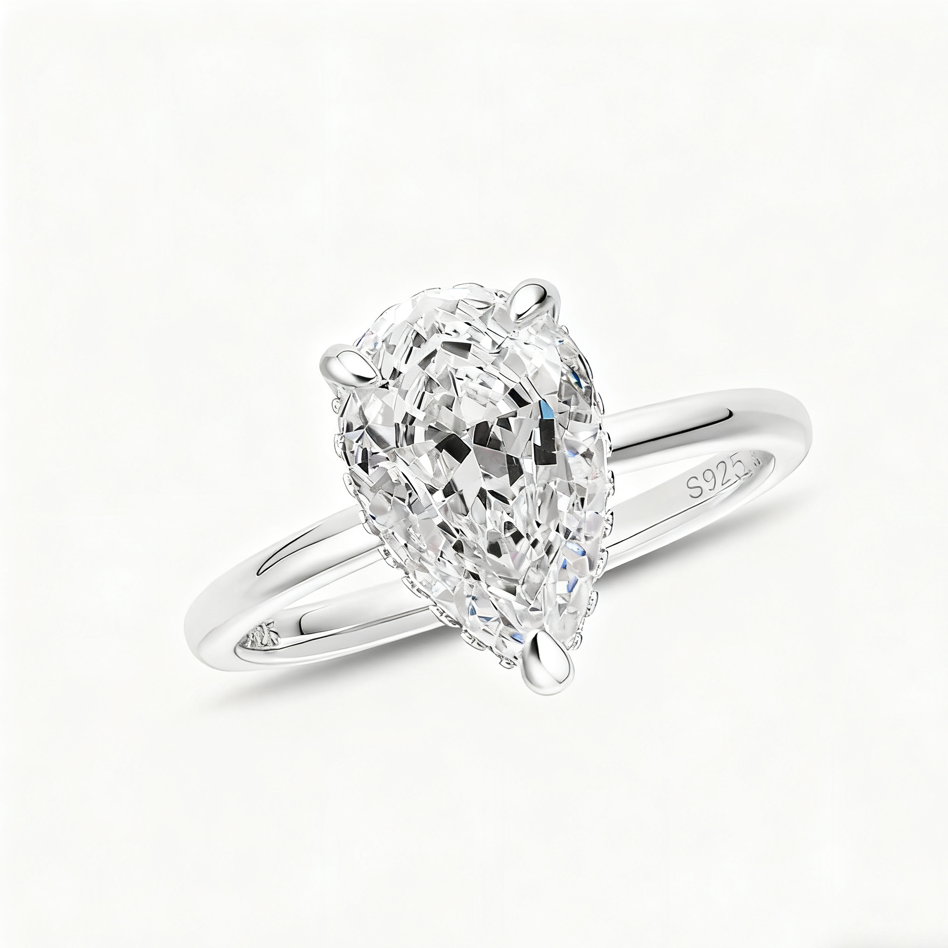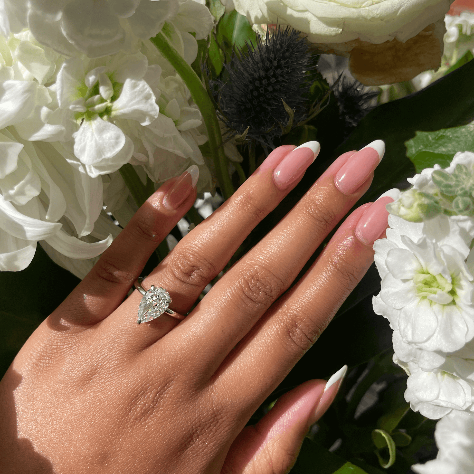 Be a vision of elegance with the Eden Ring. Crafted with a simple pear stone and pave hidden halo, you'll sparkle and shine with all of its glorious beauty. Let this ring be an expression of your own unique style and grace.